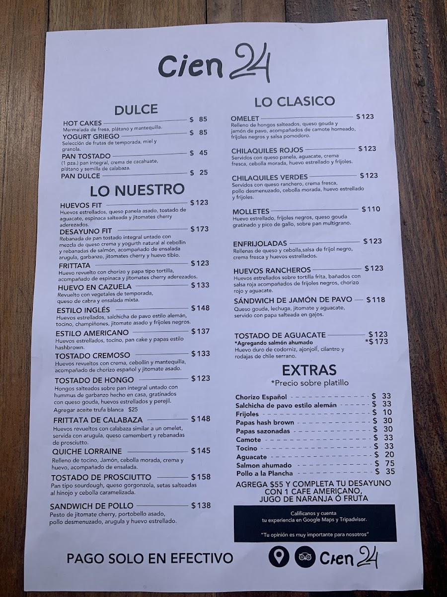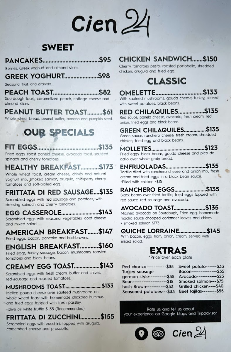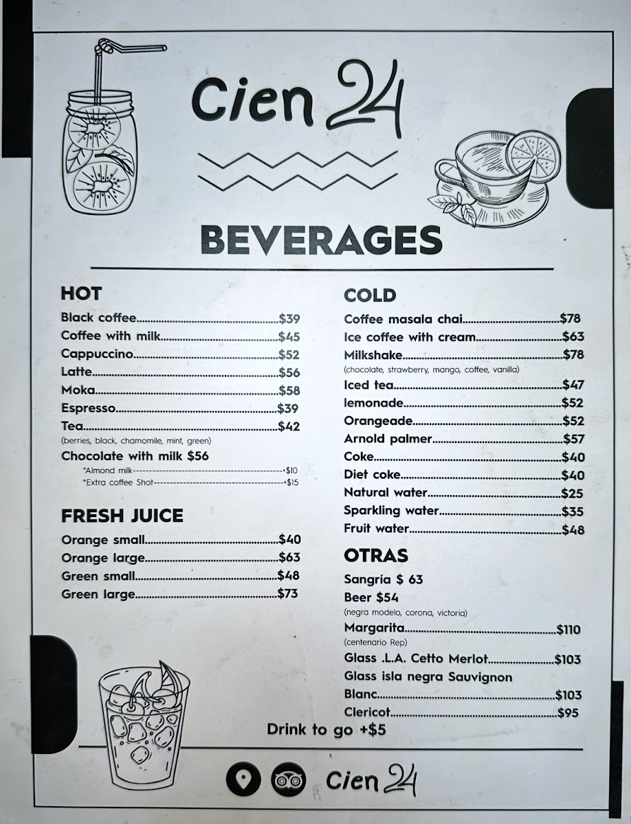 The menu at Cien 24 offers a thoughtful blend of brunch classics and casual bites with a touch of local flair, perfect for a relaxed morning or midday meal. You can expect comforting, well-prepared dishes alongside carefully crafted espresso drinks, all suited to the inviting, cozy atmosphere of this neighborhood spot.